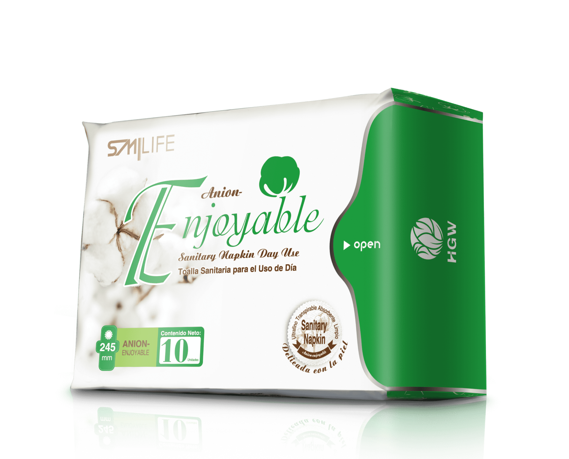 Las toallas SMILIFE para uso de día ofrecen absorción óptima y protección contra olores gracias a su tecnología con turmalina y emisión de aniones. Cómodas, frescas y altamente absorbentes.